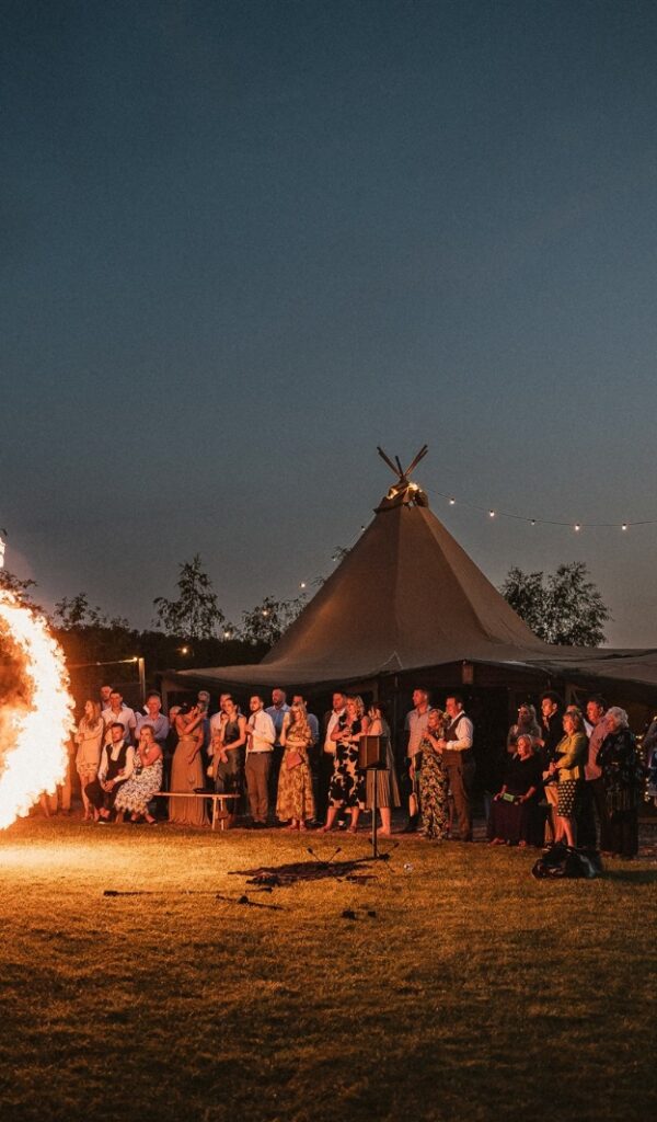 Three giant reception tipis plus intimate snug space overlooking Sherwood Forest. Complete privacy where teams celebrate success away from everyday distractions in Nottinghamshire’s most inspiring countryside setting. Festival atmosphere with forest backdrop.