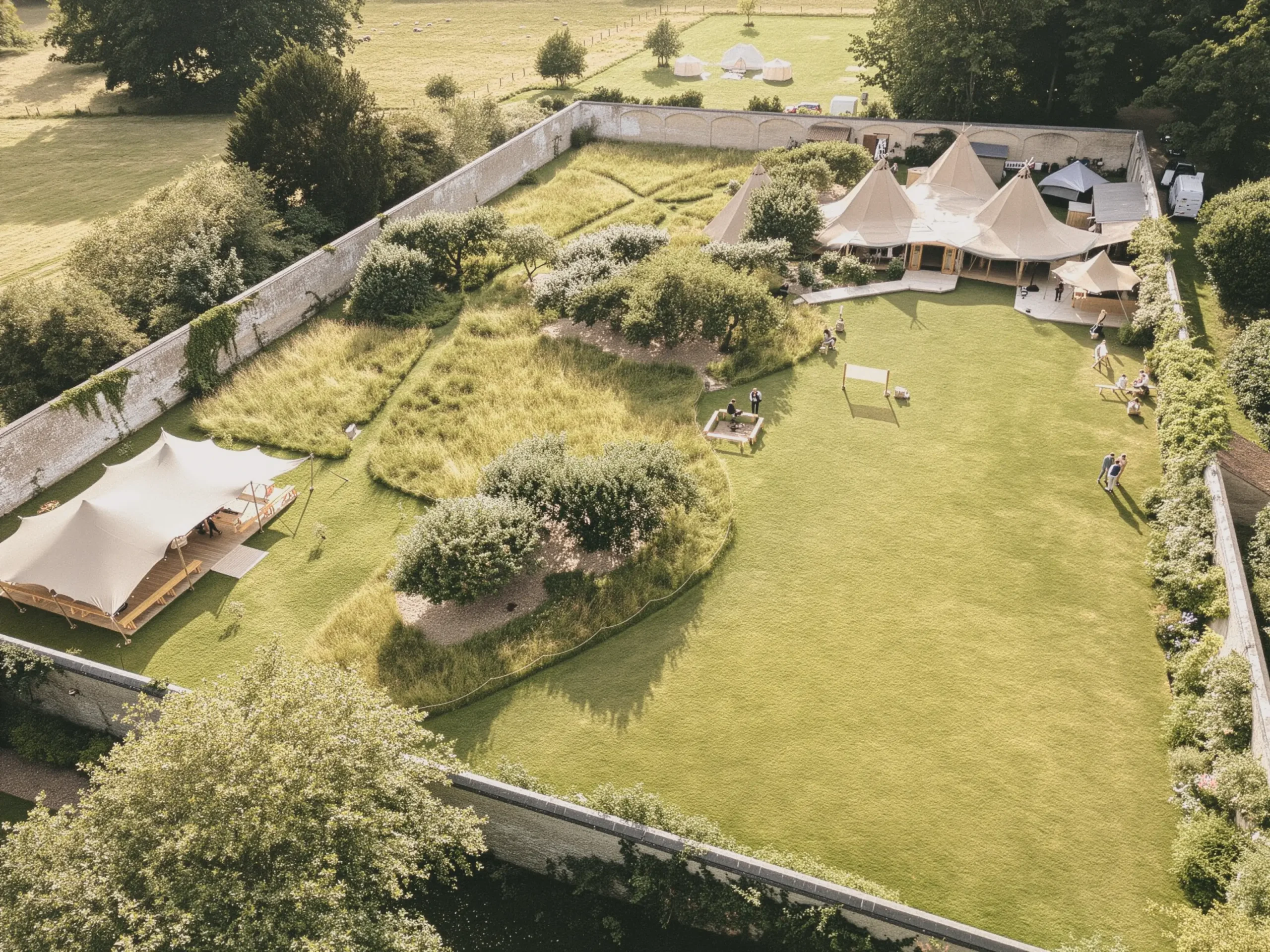 Unlock centuries of history where corporate celebrations unfold within mystical walled gardens that have witnessed generations of stories. Four giant tipis surrounded by wildflowers and ancient stone walls create magical atmosphere where teams celebrate achievements in settings that inspire wonder and connection.